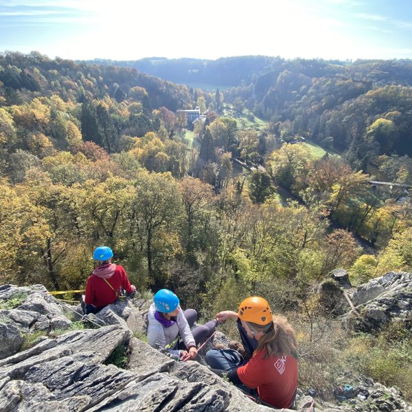 Wil jij je eerste klimpassen buiten zetten of ben je al zelfstandig outdoor voorklimmer, ga gezellig mee naar Pont a Lesse & Plain des Fosses!